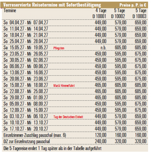 Vor Ort zahlbare NebenkostenZusatztag 2: Maut Engtal pro Pers. € 1,00