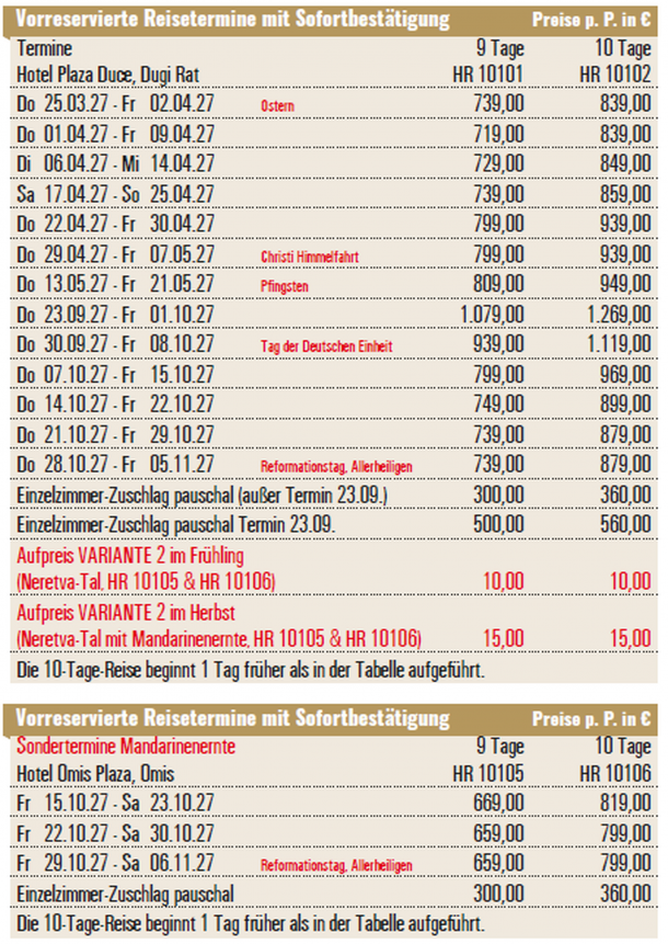 Der angebotene Zusatztag an den Plitvitzer Seen rundet diese einzigartige Premiumreise in hervorragender Weise ab.