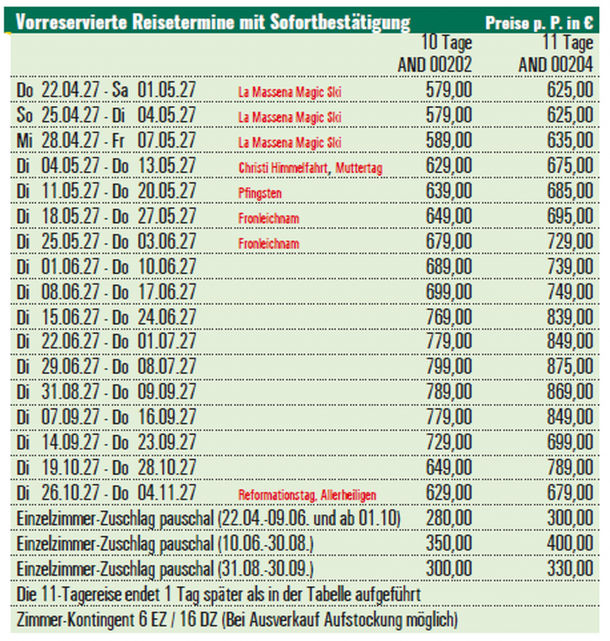 (in Einzelfällen kurzfristige Streckenverkürzung bis Font Romeu möglich) pro Pers. € 20,00