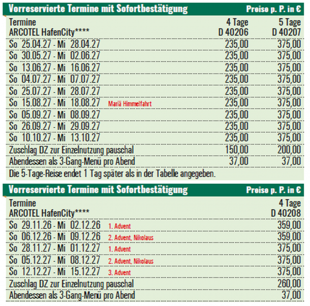 Vor Ort zahlbare Nebenkosten3. Tag: Eintritt Festung Königstein Gruppenpreis pro Pers. € 13,00