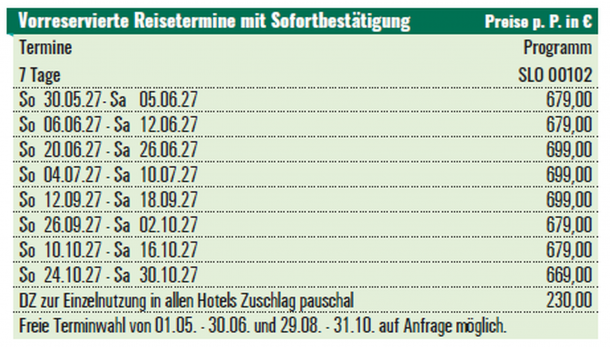 Slowenien, die nördlichste Republik des alten Jugoslawiens, erinnert optisch ein wenig an Österreich; und dies hat einen guten Grund: denn rund tausend Jahre lang gehörte das Land mit den langen Bergrücken und den grünen Tälern zu Österreich. Unser Reise-Arrangement ist eine Mischung aus Erlebnis- und Wellnessurlaub. Wir möchten Ihnen die etwas unbekannteren ...