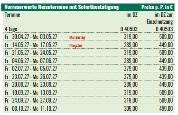 Vor Ort zahlbare Nebenkosten3. Tag: Fähre Wischhafen – Glückstadt pro Pers. € 23,00