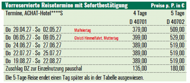 bis 20 Personen pro Pers. € 125,00