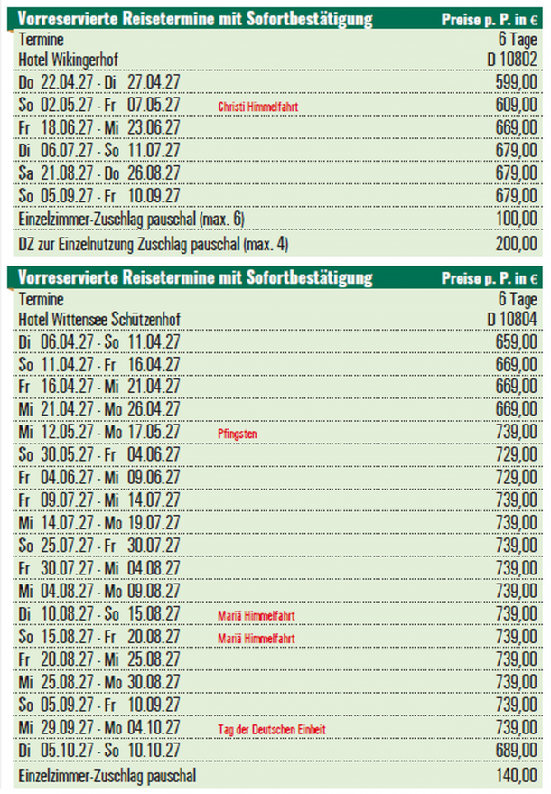 Vor Reiseantritt müssen für diese Reise Personalausweis bzw. Passdaten übermittelt werden.