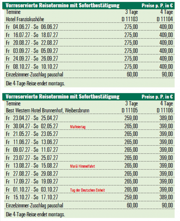 Vor Ort zahlbare NebenkostenEintritt Schloss Lohr pro Person € 3,00