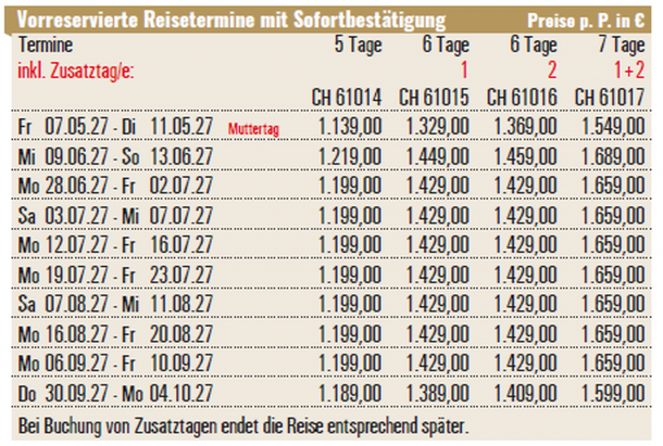 (Gruppenpreis ab 10 Pers. / max. 36 Plätze) pro Pers. € 160,00