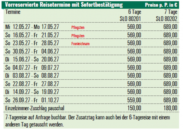 Runden Sie die Reise mit einem Besuch der Hauptstadt Ljubljana (Zusatztag) ab. Der Zusatztag kann auch mit anderen Tagen getauscht werden.