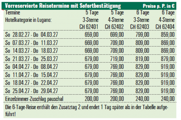 Wenn Sie in Lugano das Haupthaus bzw. 4-Sterne-Hotel Admiral buchen, können Sie dieses Programm als Premium-Reise anbieten!